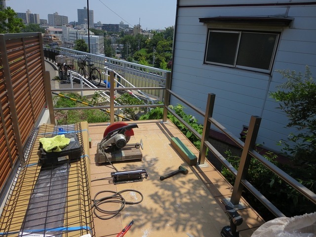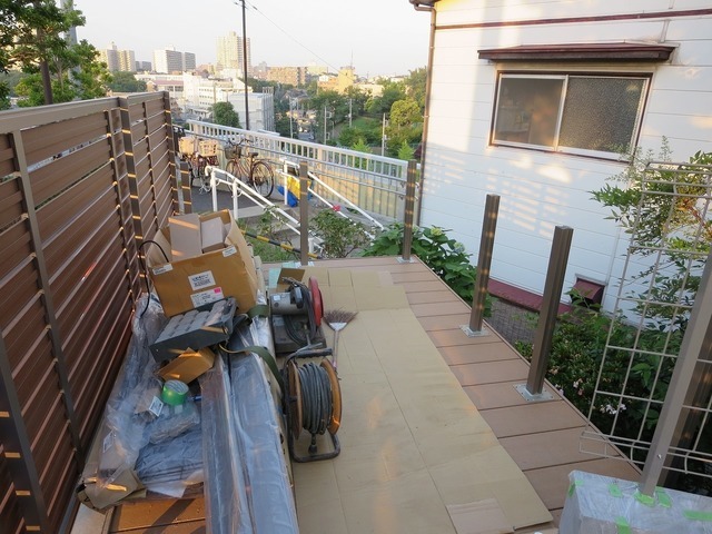 高台の途中に建てた人工木ウッドデッキは浮かんでいるような感覚にもなりま