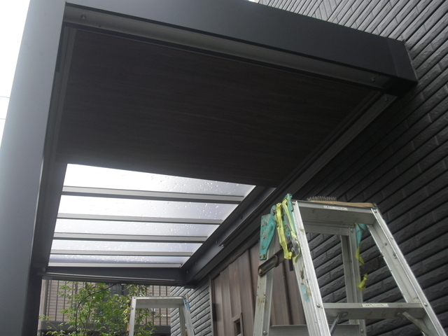 玄関前の目隠しと、お子様の飛び出しなども考慮して屋根付きスクリーンをご提案。
