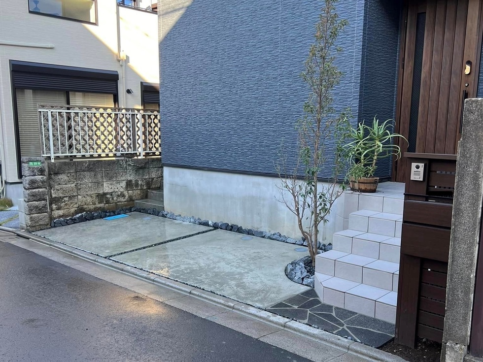 ・お庭部分はメンテンナスも考慮し、ウッドデッキは人口木材にその周りは経年変化にもメンテナンスも少ない天然石素材を多く取り入れました。時代に要望にも合わせた、環境負荷の少ない素材を利用し、植物を楽しめる空間を作ることができました。
