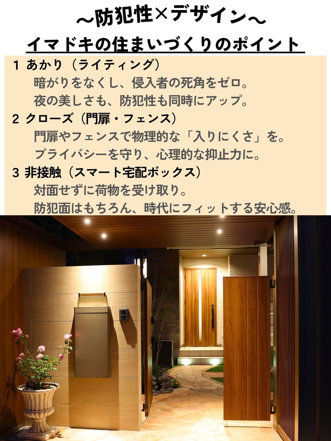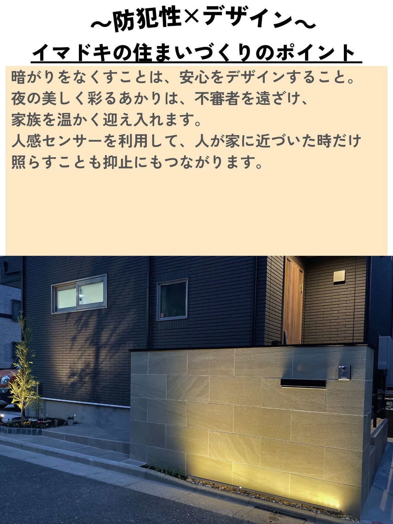 夜のアプローチ・エントランス空間は明かりのバランスが大切です。