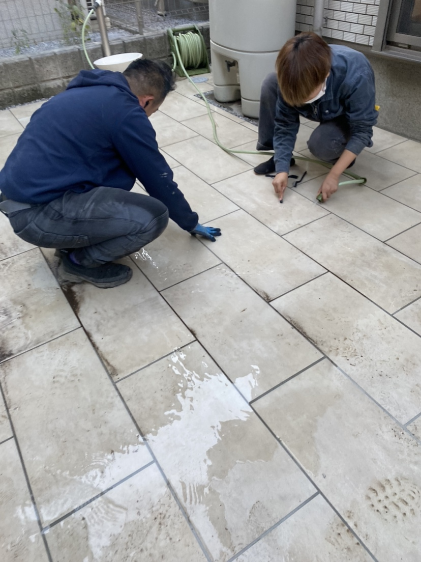 水道配管メンテナンスに伴ううウッドデッキ修繕工事の仕上げ工程2日間