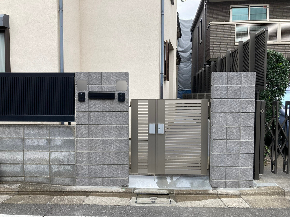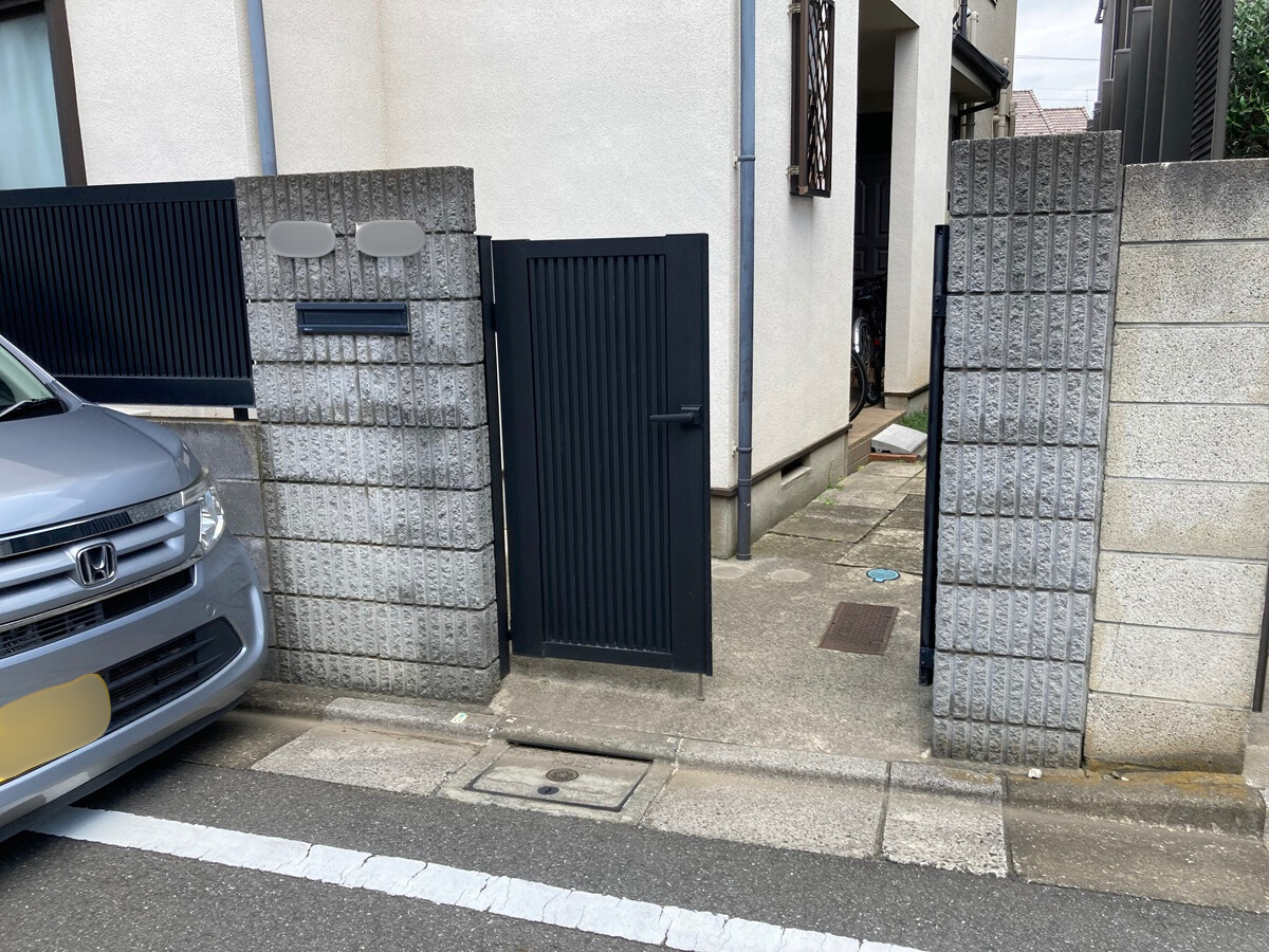 門まわりは門袖のリフォームにあわせて、建物側にあったインターホンを道路側に移動しました。インターホンを玄関扉横から道路側へ移動したことで、来客の方は敷地に入る前にすぐインターホンを見つけられ、お施主様も不用意に人が敷地内へ入ってくることが減るため、安心感のある動線になりました。玄関ドアのカギも、軽くタッチするだけで開け閉めできるタイプを採用し、毎日の出入りがよりスムーズになるよう計画した外構リフォームです。