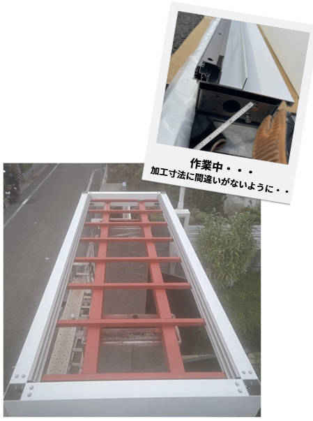 そのため、取り付けまでに時間を要しましたが前日の骨組みは寸法や位置を丁寧に確認して設置してたため、問題なく作業に進めることができました!