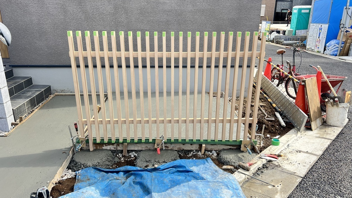 この現場では、駐輪場の目隠しや敷地の結界として設置