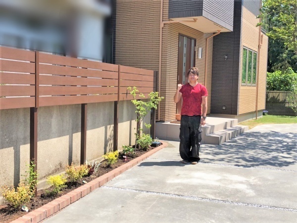 緑を楽しむ、建物に合わせた暖色オープン外構施工例