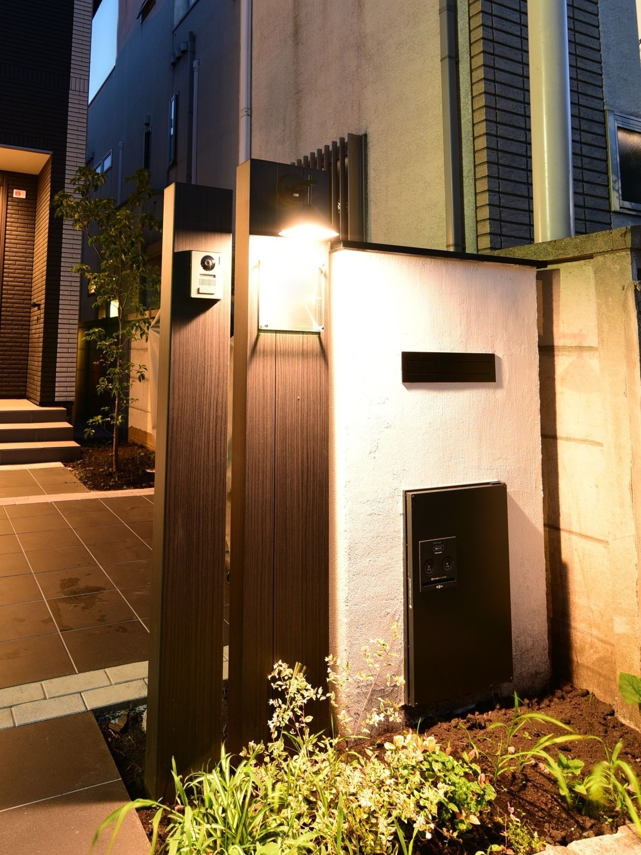 機能門柱の隣に宅配