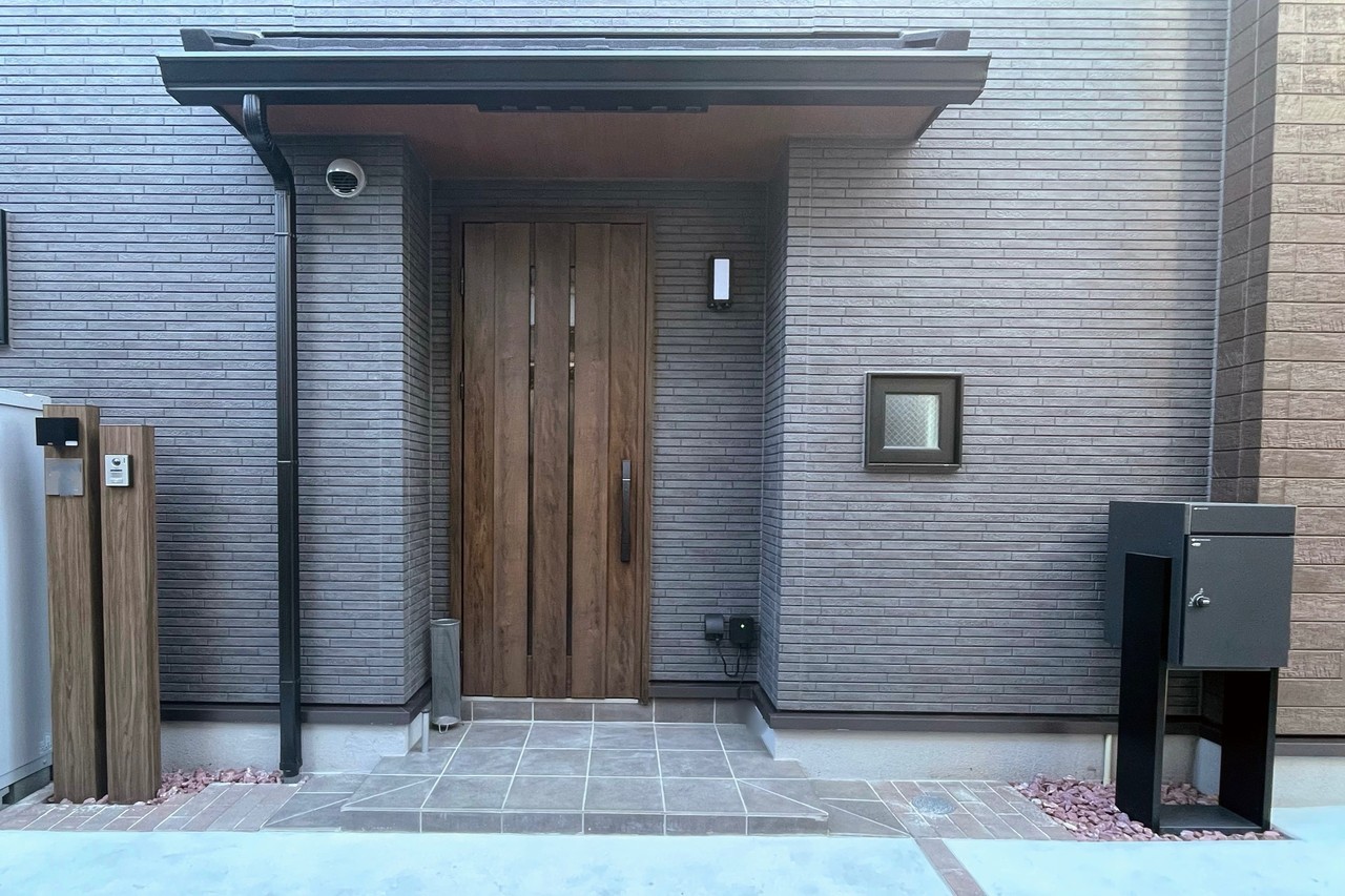 玄関ドアの色と併せたポール建て仕様